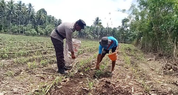 Bhabinkamtibmas Polsek Jailolo Pantau Pemupukan Jagung, Dukung Program Ketahanan Pangan