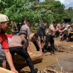 Polisi Sigap Bersihkan Material Longsor Pasca Banjir di Halmahera Utara
