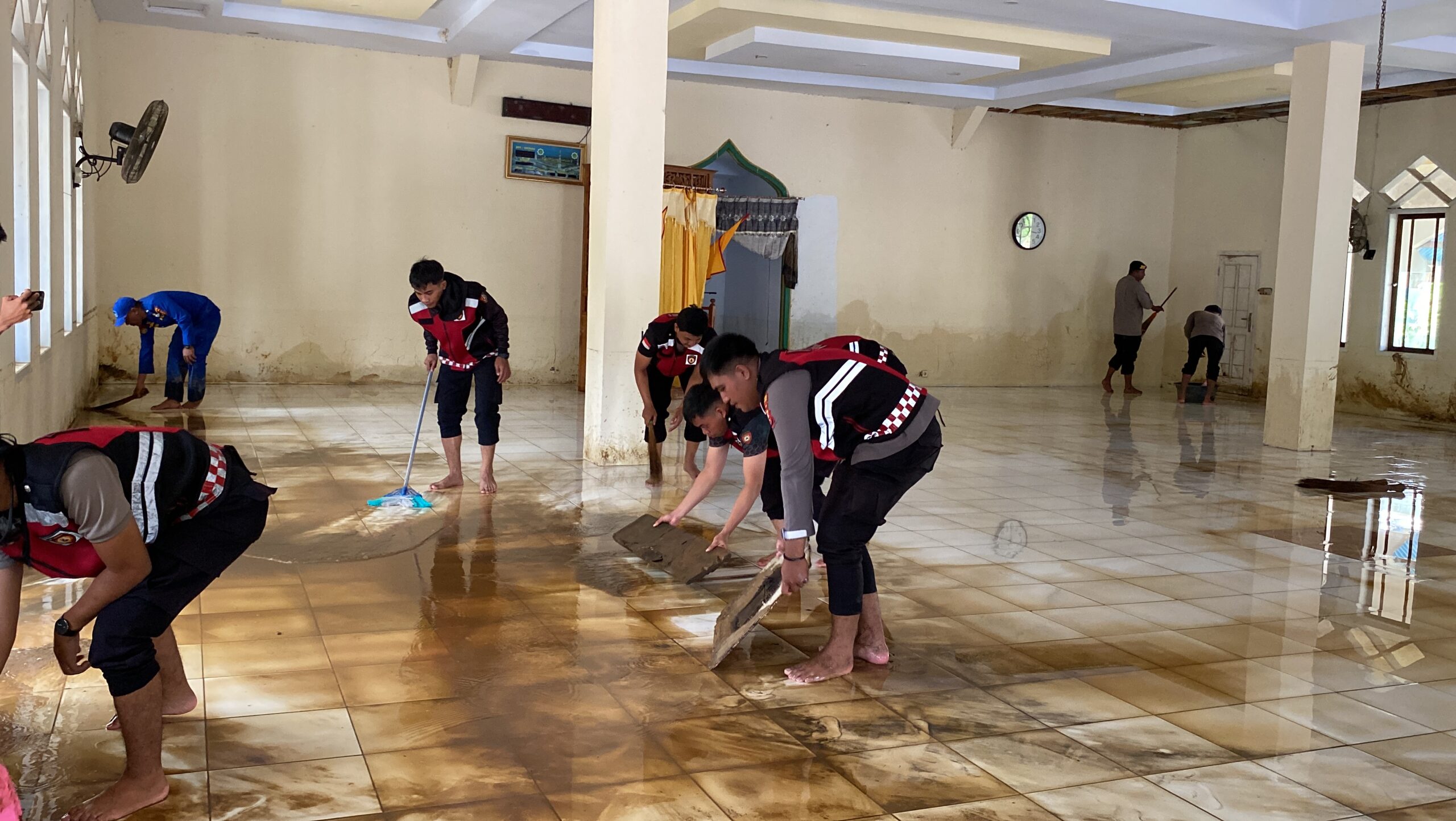 Selain evakuasi, aparat gabungan juga melakukan pembersihan puing-puing dan kayu hanyut, membantu membersihkan permukiman warga serta masjid, serta melakukan pendataan jumlah warga terdampak.