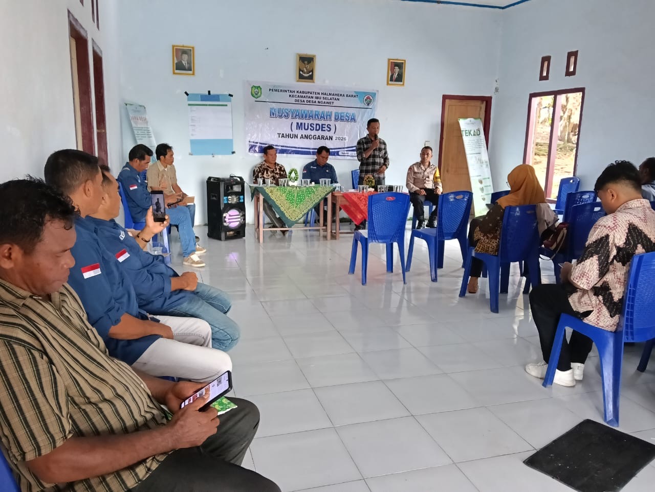 Kegiatan Musdes ini dihadiri oleh sejumlah unsur pemerintahan dan tokoh masyarakat, antara lain Camat Ibu Selatan, Kepala Desa Ngawet, Ketua dan Anggota BPD, Bidan Desa, Tokoh Agama, Ketua RT 1, serta Tokoh Masyarakat setempat.