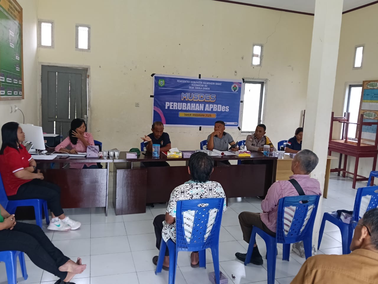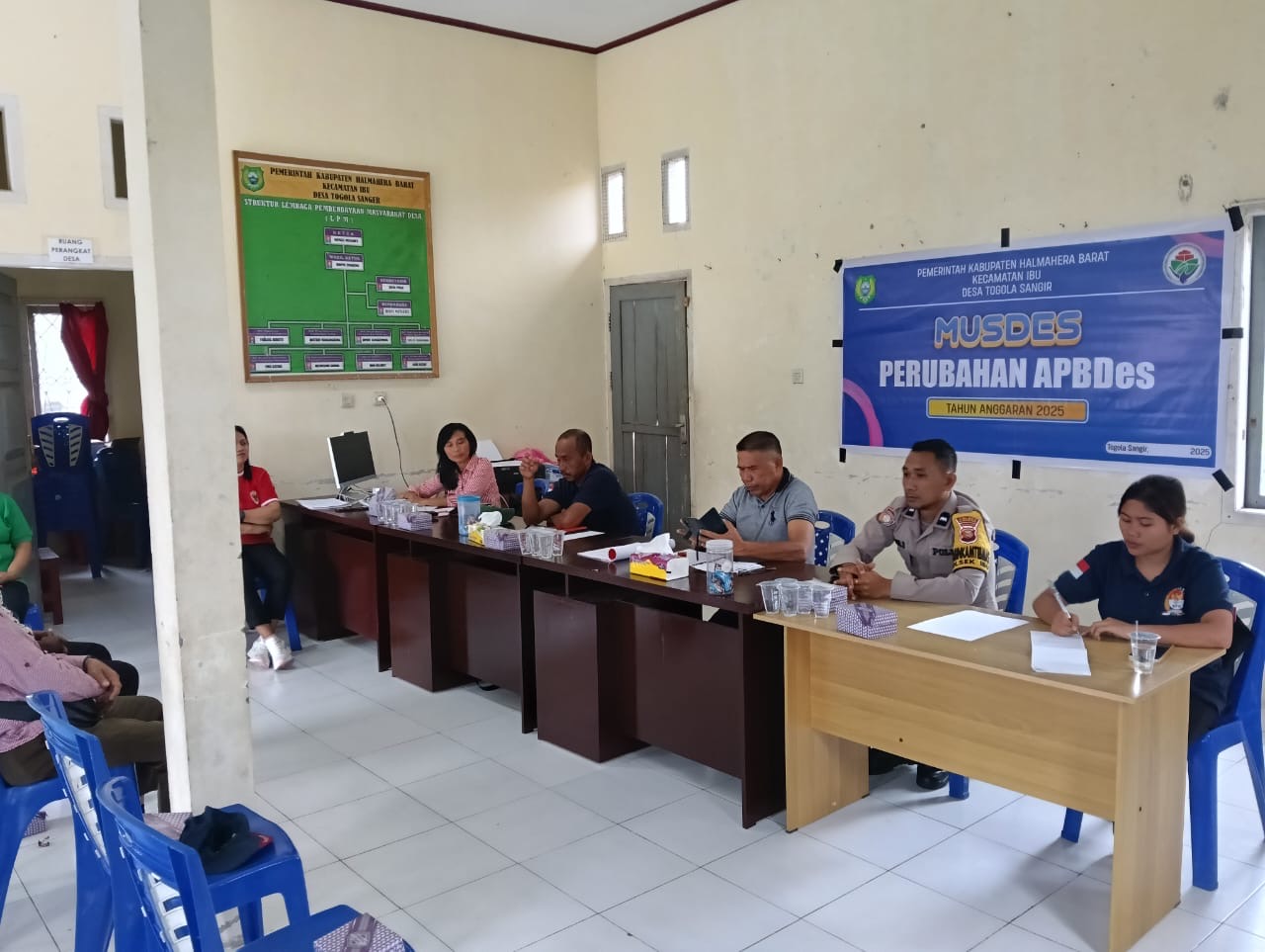 Dalam rangka menjalin kemitraan dan mendukung transparansi tata kelola pemerintahan desa, Bhabinkamtibmas Desa Nanas Aipda Abner B. menghadiri kegiatan Musyawarah Desa (MUSDES)tentang Perubahan Anggaran Pendapatan dan Belanja Desa (APBDes) Tahun Anggaran 2025, yang berlangsung di Kantor Desa Togola Sanger, Kecamatan Ibu, Kabupaten Halmahera Barat, Jumat (10/10/2025).