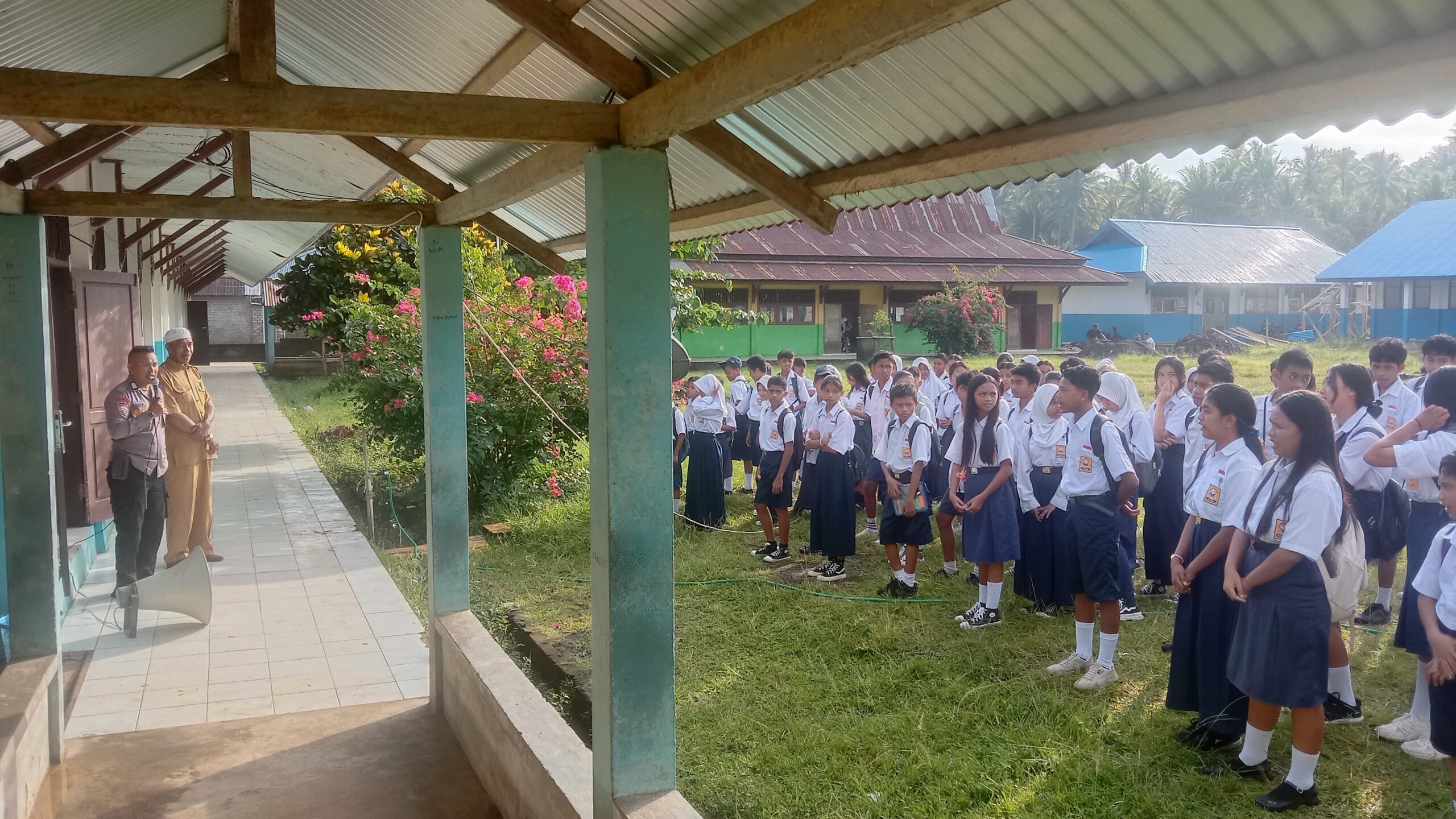 Halmahera Barat– Dalam rangka mendukung program pendidikan dan pembinaan karakter generasi muda, Bhabinkamtibmas Polsek Ibu Bripka Nok Tjepa, S.AP melaksanakan kegiatan sosialisasi penerimaan siswa baru SMA Kemala Taruna Bhayangkara Tahun Ajaran 2026–2027, bertempat di Lapangan Apel SMP Negeri 5 Halmahera Barat, Desa Talaga, Kecamatan Ibu, pada Selasa (11/11/2025).