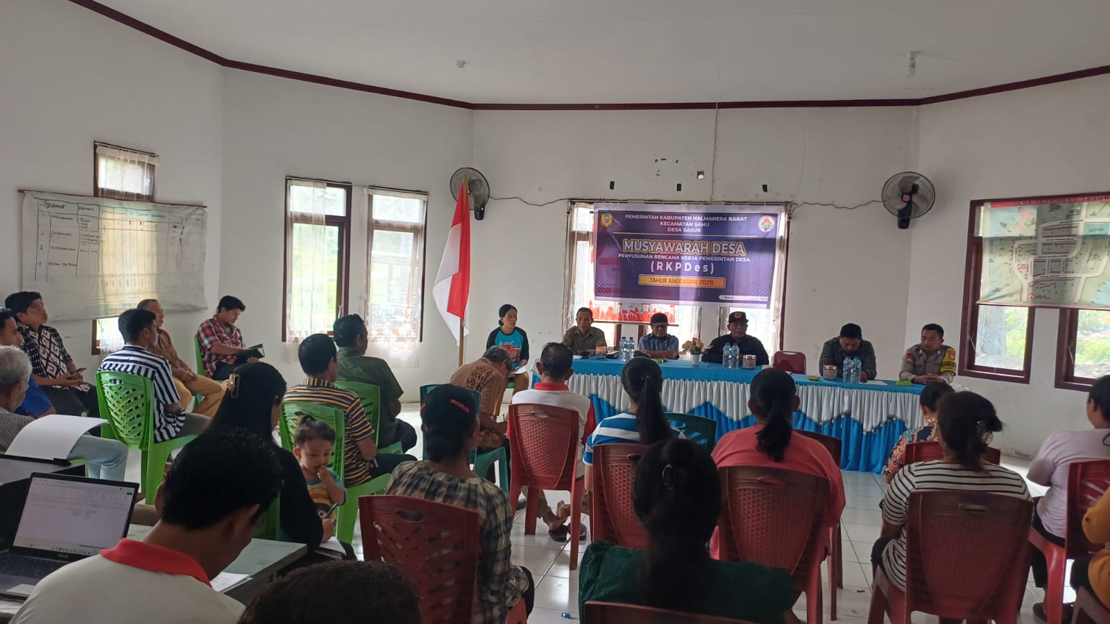 Halmahera Barat, 27 Februari 2026 – Bhabinkamtibmas Desa Sasur, Bripka Wahda Iksan, menghadiri kegiatan Musyawarah Desa (Musdes) tentang Penyusunan Rencana Kerja Pemerintah Desa (RKPDes) Tahun Anggaran 2026. Kegiatan berlangsung pada Jumat (27/2/2026) pukul 10.00 WIT, bertempat di Kantor Desa Sasur, Kecamatan Sahu, Kabupaten Halmahera Barat.