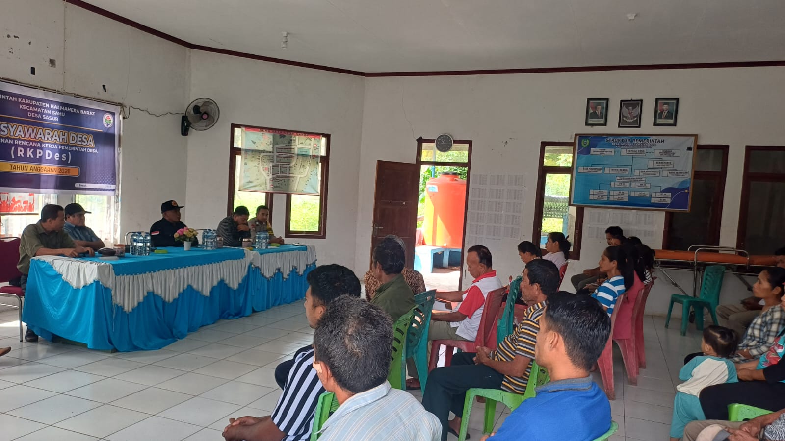 Musdes dihadiri oleh unsur pemerintah kecamatan dan desa serta tokoh masyarakat, antara lain perwakilan Camat Sahu, Ketua BPD, Kepala Desa Sasur, Babinsa, tokoh agama, tokoh adat, tokoh pemuda, tokoh masyarakat, pendamping desa, serta sekitar 40 orang perwakilan masyarakat Desa Sasur.