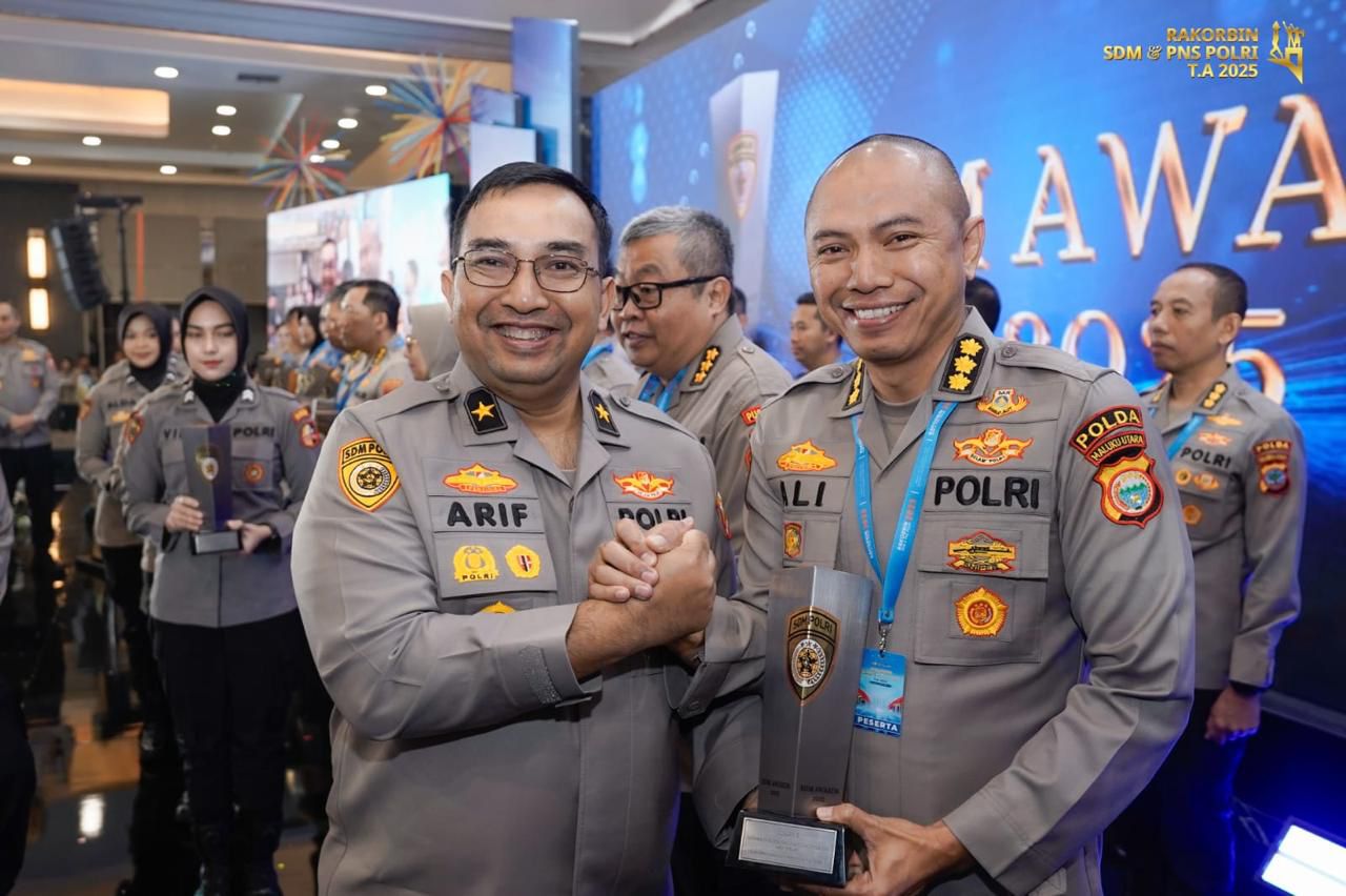 Kepolisian Daerah Maluku Utara kembali menorehkan prestasi di tingkat nasional dengan meraih penghargaan Juara 1 Lomba Indeks Profesionalitas ASN Polri dalam kegiatan Rapat Koordinasi Pembinaan (Rakorbin) SDM dan PNS Polri Tahun Anggaran 2025 yang digelar di Hotel Mercure Convention Center, Ancol, Jakarta Utara, yang dilaksanakan tiga hari mulai Rabu hingga Jumat, 29 s/d 31 Oktober 2025.