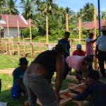Sinergi Polri dan Masyarakat, Bhabinkamtibmas Talaga Ikut Bangun Tribun Pertandingan