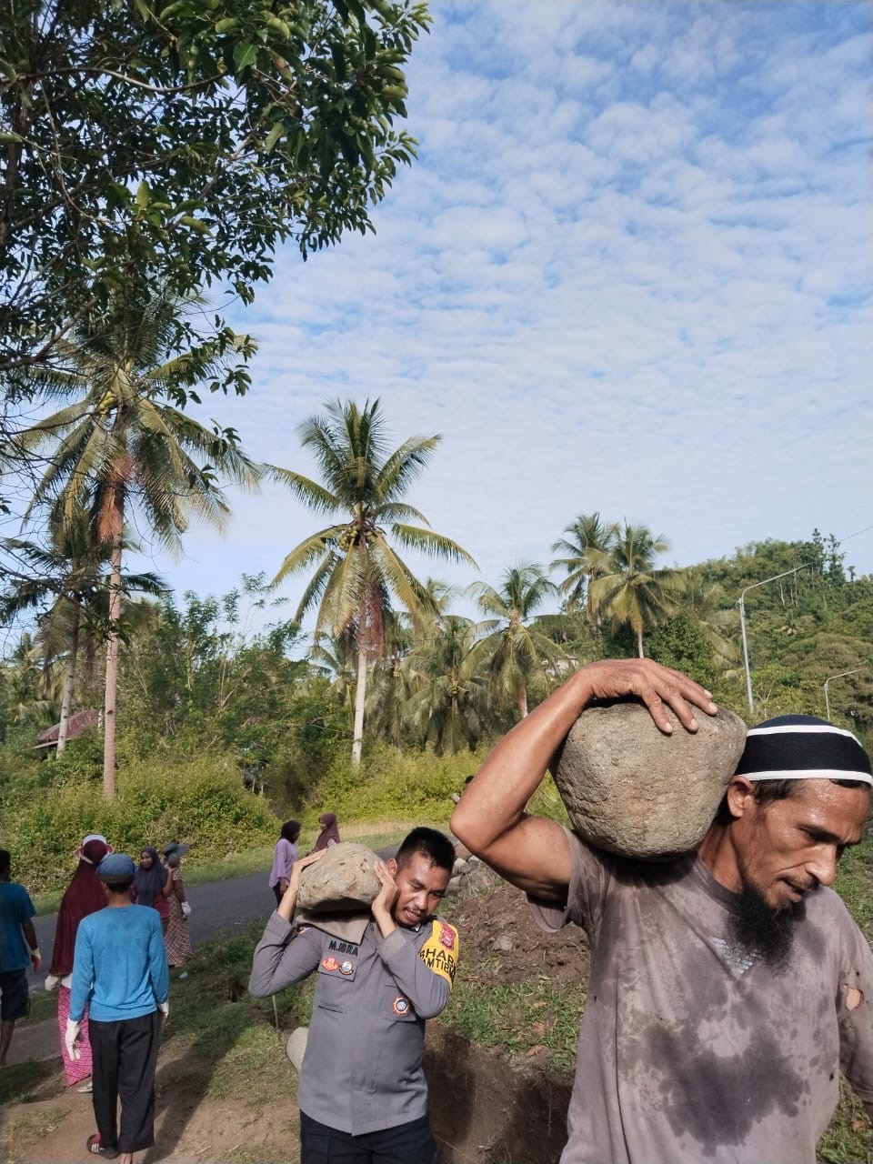 Pembangunan talud ini dilakukan pada area dengan kontur tanah curam yang rawan longsor, terlebih dengan prediksi kenaikan curah hujan pada November 2025 hingga Februari 2026. Kondisi tersebut membuat sejumlah rumah warga berada dalam ancaman, sehingga talud menjadi langkah penting untuk mencegah terjadinya longsor yang dapat membahayakan keselamatan. Melihat urgensi itu, Brigpol Ibnu tidak hanya hadir memantau, tetapi turun langsung sejak pukul 08.30 WIT untuk mengaduk semen, mengangkat batu, dan menyusun konstruksi talud bersama masyarakat.