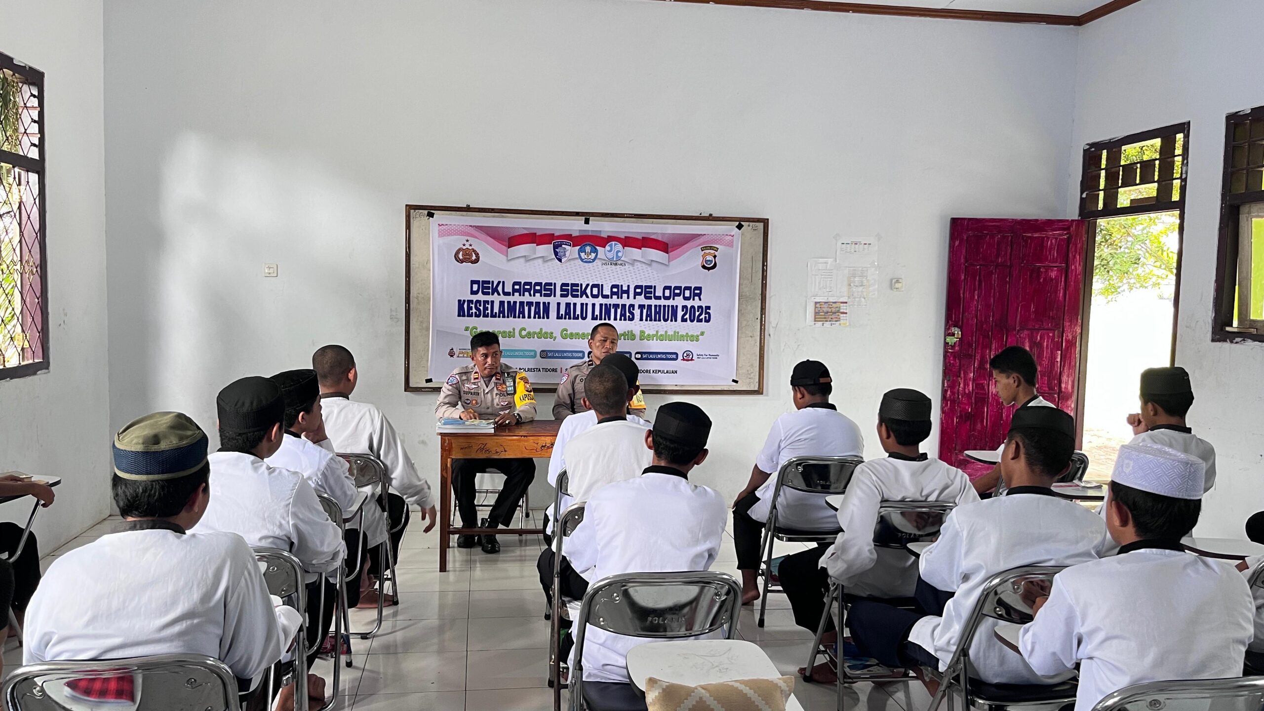 Sosialisasi dipimpin Wakasat Lantas Polresta Tidore IPTU Supardi, S.E., bersama personel Sat Lantas lainnya. Acara ini menjadi bagian dari upaya polisi memperkuat edukasi keselamatan berkendara sejak usia sekolah, khususnya di lingkungan pendidikan berbasis pesantren.