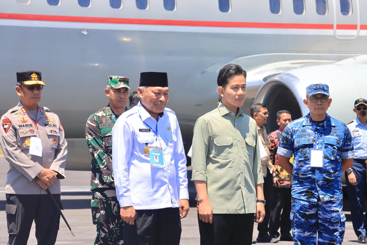 Kapolda Maluku Utara Irjen Pol Drs. Waris Agono, M.Si menyambut hangat kedatangan Wakil Presiden Republik Indonesia Bapak Gibran Rakabuming Raka beserta rombongan di Bandara Pitu, Desa Wawama, Kecamatan Morotai Selatan, Kabupaten Pulau Morotai, Rabu (15/10).