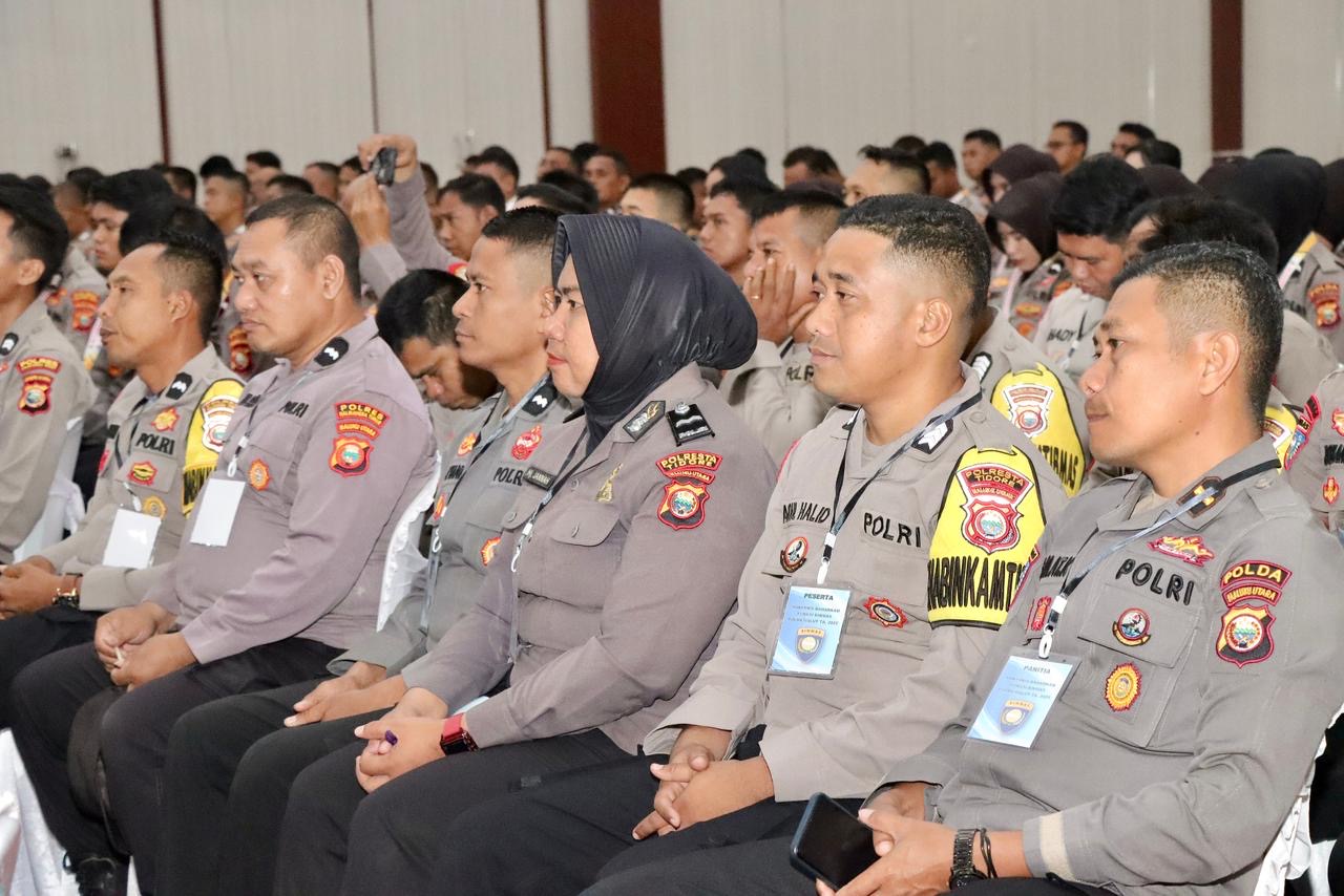 Kegiatan yang mengusung tema “Sinergitas Baharkam Polri yang Presisi Guna Memantapkan Harkamtibmas dalam Rangka Mendukung Asta Cita” itu turut dihadiri Wakapolda Malut, Brigjen Pol. Stephen M. Napiun, S.I.K., S.H., M.Hum., para pejabat utama Polda, serta para peserta Rakernis.