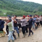 Polres Gayo Lues, Polsek Rikit Gaib dan Brimob bersama Warga Gotong Royong Siapkan Jembatan Darurat Pasca Banjir Bandang di Penomon Jaya