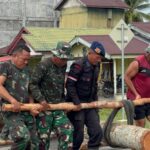 Sinergitas TNI Polri dan Masyarakat Bangun Jembatan Darurat di Aceh Singkil