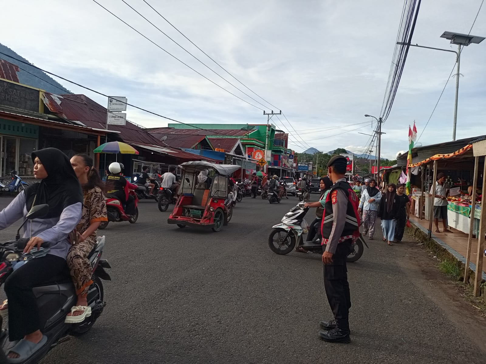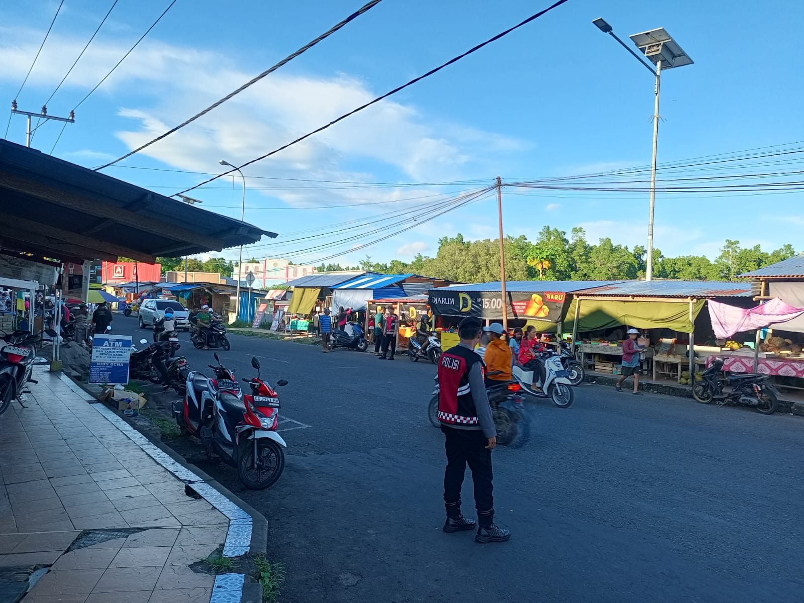 Halmahera Barat – Dalam rangka menjaga keamanan dan ketertiban masyarakat selama bulan Ramadhan, personel Samapta Polres Halmahera Barat melaksanakan kegiatan pengamanan dan pengaturan arus lalu lintas di kawasan Pasar Takjil Kota Jailolo, Minggu (8/3/2026) sore.