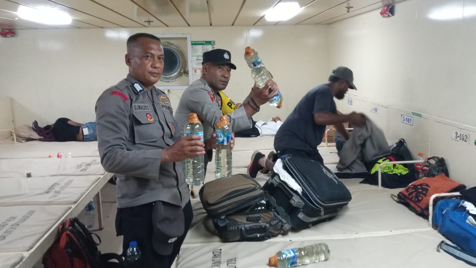”Barang bukti kami temukan tergeletak tanpa pemilik di area dek 3 dan dek 4, tepatnya di sekitar tangga turun dan di atas ranjang penumpang. Dari hasil rekapitulasi, kami menyita 80 botol berukuran 600 ml dan 50 botol ukuran 1.500 ml,” papar Ipda Sudirjo.
