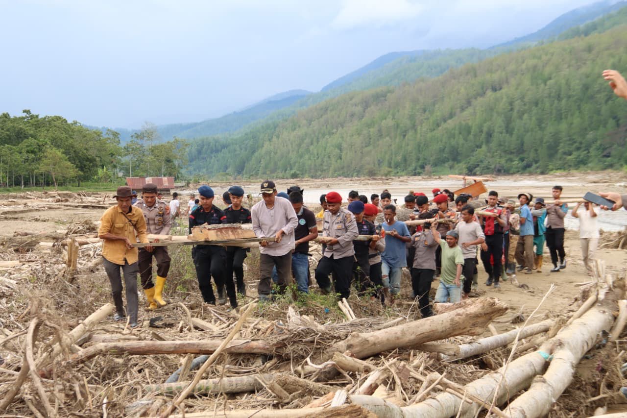 “Personel Polres Gayo Lues, Brimob dan Polsek bersama masyarakat bahu-membahu menyiapkan jembatan darurat dengan memanfaatkan gelondongan kayu bekas banjir bandang. Langkah ini dilakukan agar aktivitas masyarakat dapat kembali berjalan, terutama untuk kebutuhan sehari-hari,” ujar IPTU Muhamad Abidinsyah.