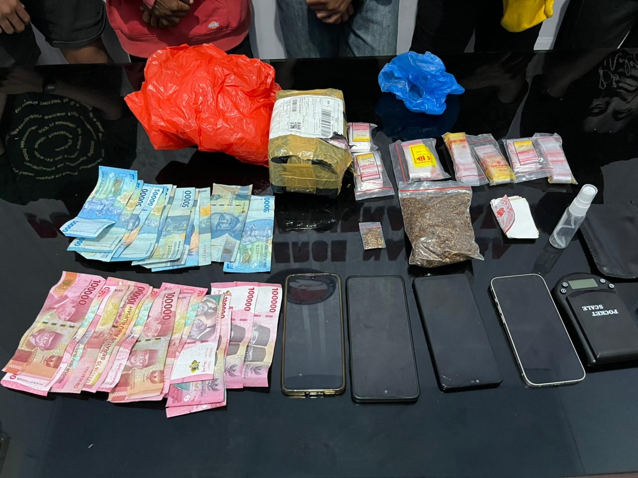 Dalam operasi tersebut, polisi mengamankan sejumlah barang bukti, antara lain yaitu Narkotika jenis tembakau sintetis dalam beberapa kemasan, Uang tunai total Rp2.150.000, Empat unit handphon, Satu timbangan digital, Plastik klip bening, botol semprot cairan sintetis, dan kertas linting rokok