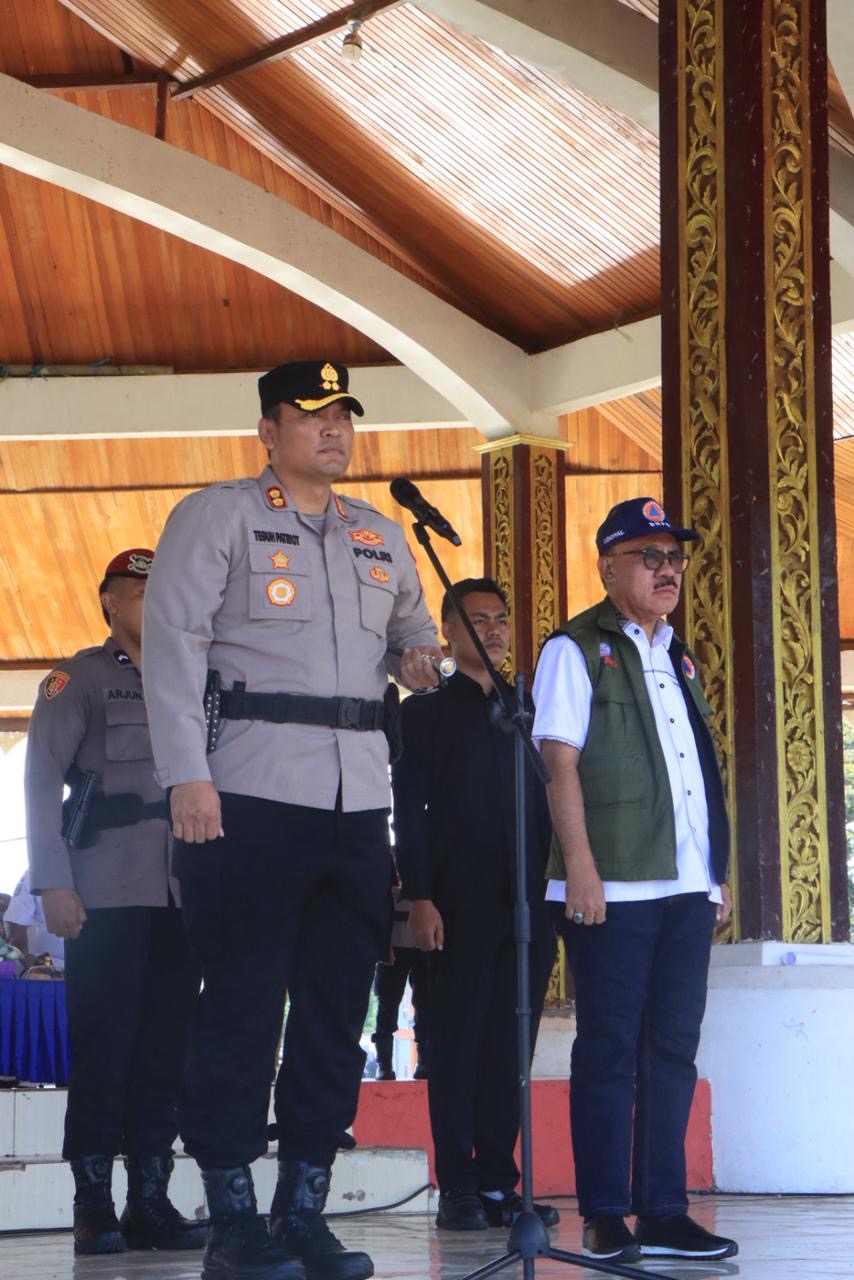 “Seluruh personel dan unsur terkait harus sigap, cepat, dan tepat dalam memberikan respons terhadap berbagai potensi bencana, demi melindungi keamanan dan keselamatan masyarakat,” ujar Kapolres Halbar membacakan amanat Kapolri.