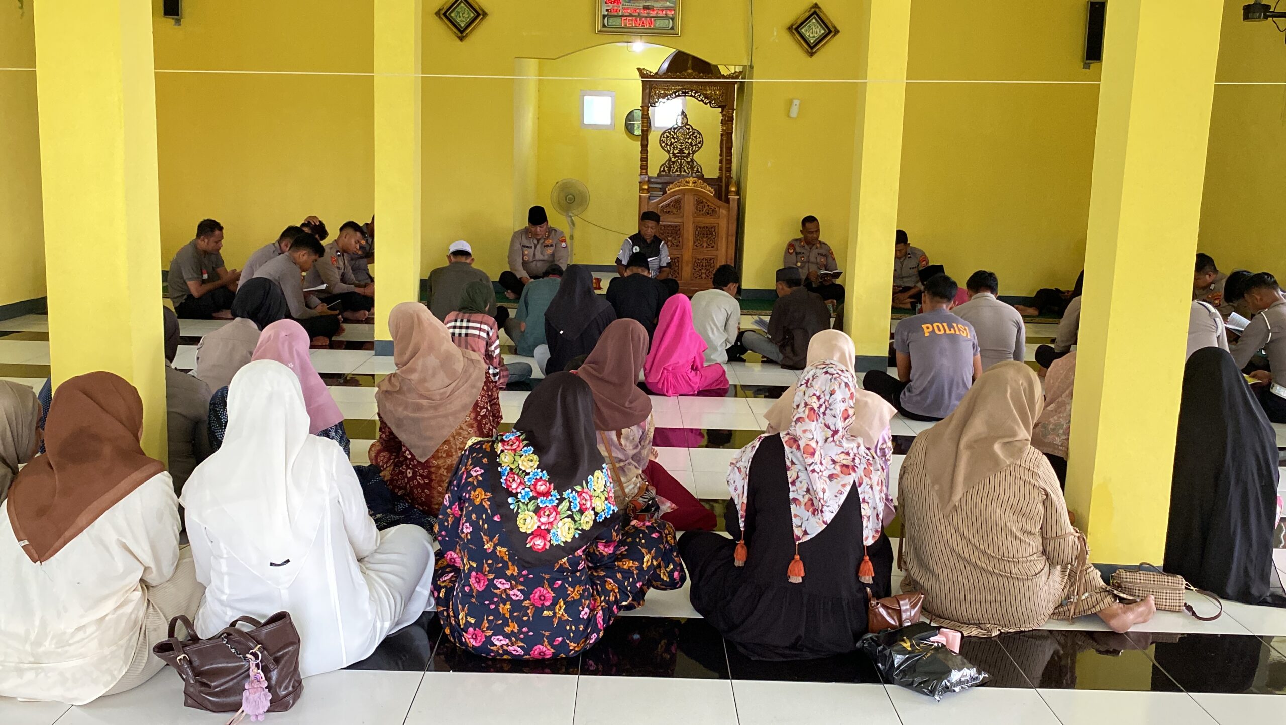 Kegiatan yang berlangsung khidmat tersebut dipimpin langsung oleh Kapolres Halmahera Barat, AKBP Teguh Patriot, S.I.K., M.T, dan dihadiri oleh Ketua Bhayangkari Cabang Halbar Ny. Elisa Teguh, Wakil Ketua Bhayangkari Ibu Astuti Mirsan Yassin, para pejabat utama Polres Halbar, serta personel Polres dan ibu-ibu Bhayangkari. Turut hadir pula sejumlah anak yatim yang menerima santunan.