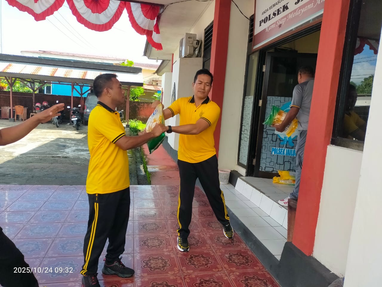 Halmahera Barat-Dalam rangka mendukung Program Akselerasi Gerakan Pangan Murah Polri, gabungan personel dari SPKT, Humas, Rena, dan TIK Polres Halmahera Barat melaksanakan kegiatan pendistribusian beras SPHP di PT. Dewa Coco Kecamatan Sahu, pada Jumat (24/10/2025).