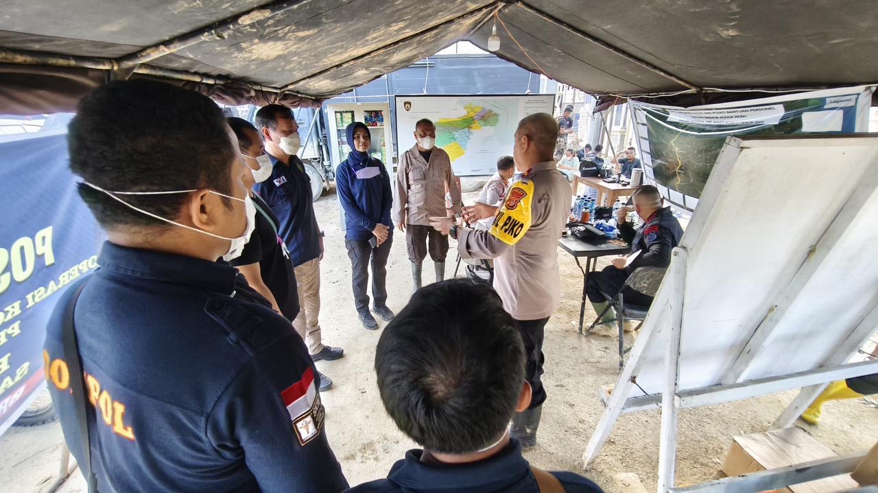 Aceh Tamiang, 6 Desember 2025 — Polri kembali menunjukkan komitmen kemanusiaannya melalui penguatan layanan kesehatan di wilayah bencana. Di tengah jalan yang rusak, jembatan terputus, serta wilayah tanpa sinyal, Tim Kesehatan Pusdokkes Polri bersama tim medis Biddokkes Polda Jambi dan RS Bhayangkara Jambi tiba di Pos Bencana depan Mako Polres Aceh Tamiang pukul 17.00 WIB. Minimnya komunikasi membuat perjalanan penuh tantangan, namun tim tetap bergerak cepat untuk memastikan masyarakat menerima layanan kesehatan sesegera mungkin. Setibanya di lokasi, mereka langsung memperkuat pelayanan kesehatan di tengah meningkatnya korban luka dan kondisi rumah sakit yang sempat lumpuh akibat banjir. Banyak fasilitas kesehatan baru kembali beroperasi secara bertahap, namun masih kekurangan tenaga. Polri berpacu dengan waktu menangani korban luka, mendukung proses identifikasi korban meninggal, dan mengantisipasi penyakit pasca-banjir seperti diare, ISPA, infeksi kulit, gangguan lambung, dan berbagai keluhan lain yang mulai muncul di pos-pos pengungsian.