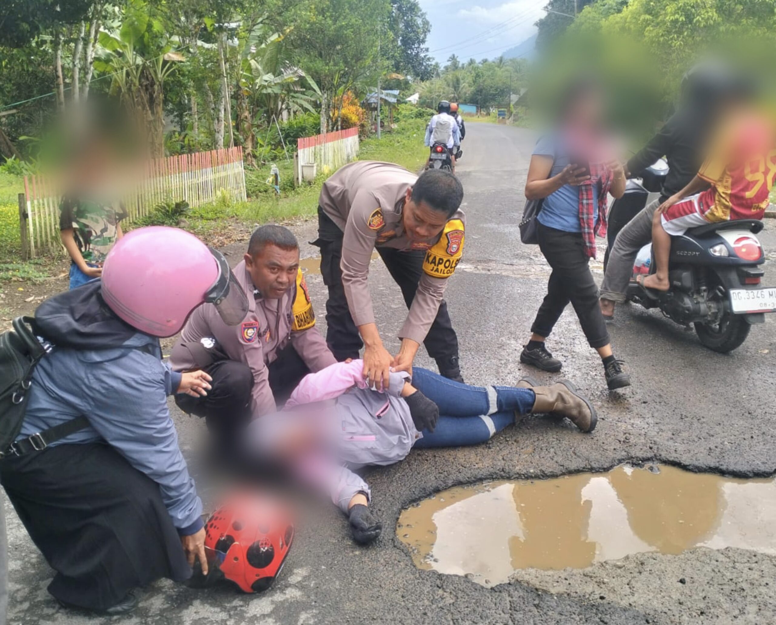 Mengetahui kondisi tersebut, Kapolsek Jailolo IPTU Latita, S.H., M.H., bersama anggota Aipda Faisal Djafar dan Aipda Risalah Patty segera bertindak cepat dengan memberikan pertolongan pertama. Selanjutnya, korban langsung dievakuasi dan dibawa ke Rumah Sakit Umum Daerah (RSUD) Jailolo guna mendapatkan penanganan medis lebih lanjut.