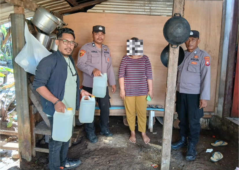 Dalam razia tersebut, petugas berhasil mengamankan sejumlah minuman keras jenis cap tikus dari seorang warga berninisial (S, M) (45), seorang petani asal Desa Tasye.