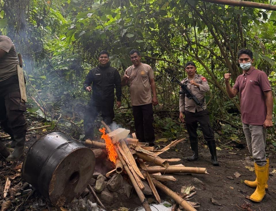 Di lokasi tersebut, aparat mendapati sejumlah barang bukti, di antaranya 600 liter saguer yang masih tersimpan dalam jerigen, satu unit bepak atau alat penyulingan, serta lima liter miras hasil olahan.
