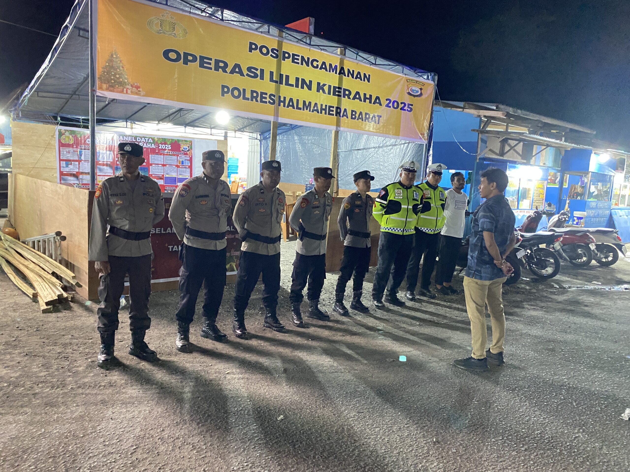 Halmahera Barat – Dalam rangka menjaga keamanan dan ketertiban masyarakat serta kelancaran arus lalu lintas selama perayaan Natal dan Tahun Baru (Nataru), personel Pos Pengamanan (Pos Pam) Perempatan Akelamo melaksanakan kegiatan pengamanan dan pengecekan terhadap kendaraan roda empat (R4) yang melintas(24/12/25).