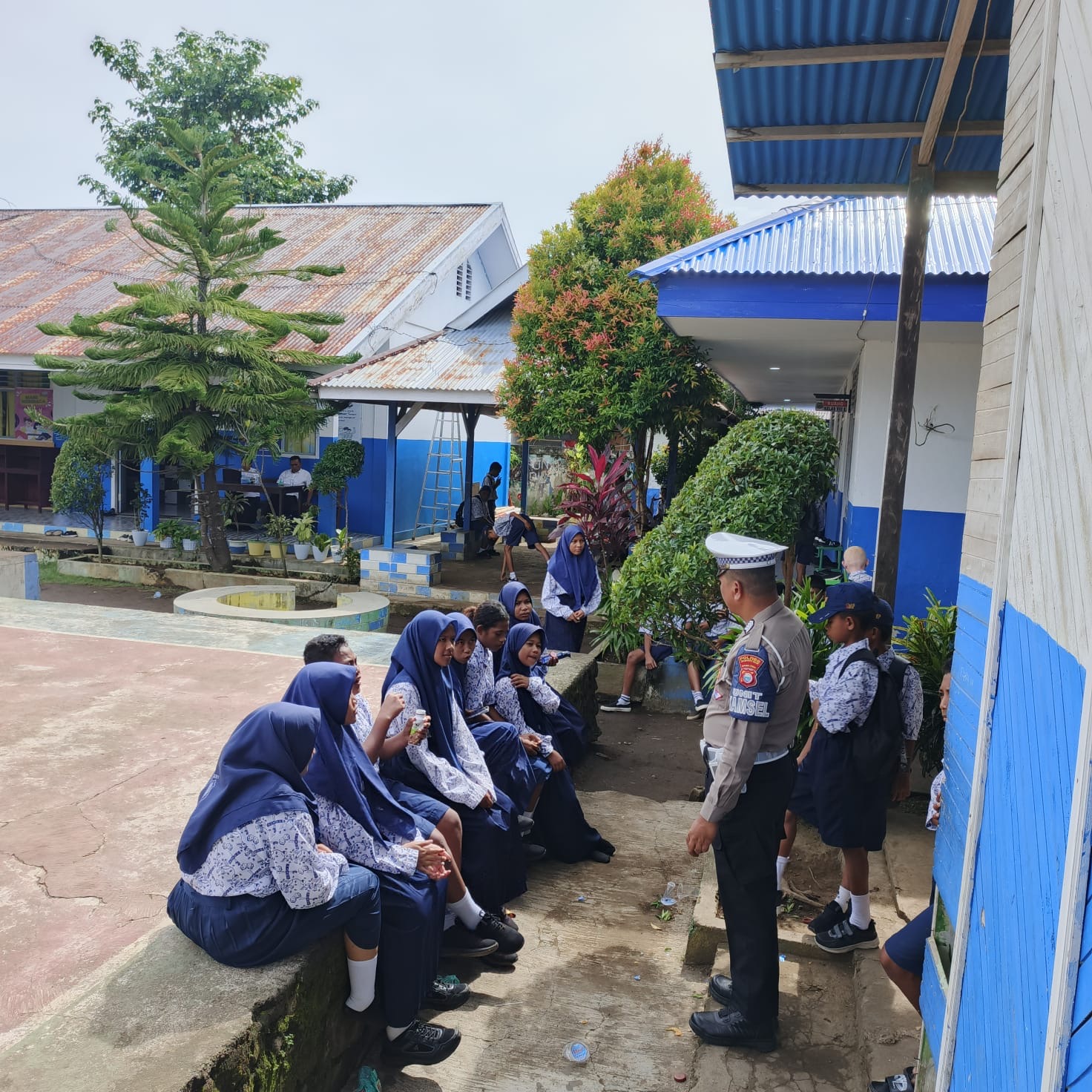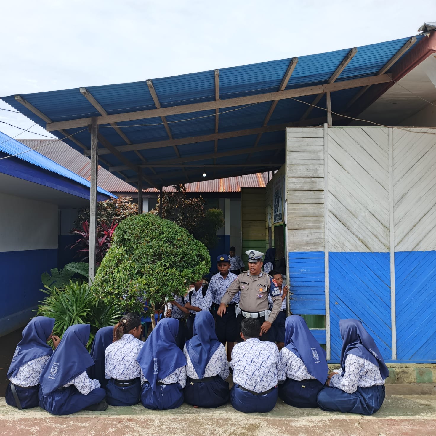 Halmahera Barat – Kamis, 13 November 2025 Personel Unit Kamsel Sat Lantas Polres Halmahera Barat melaksanakan kegiatan Polantas Menyapa serta memberikan sosialisasi dan himbauan terkait Kamseltibcar Lantas kepada para siswa-siswi SMP Negeri 1 Halbar di Desa Jalan Baru, Kecamatan Jailolo.