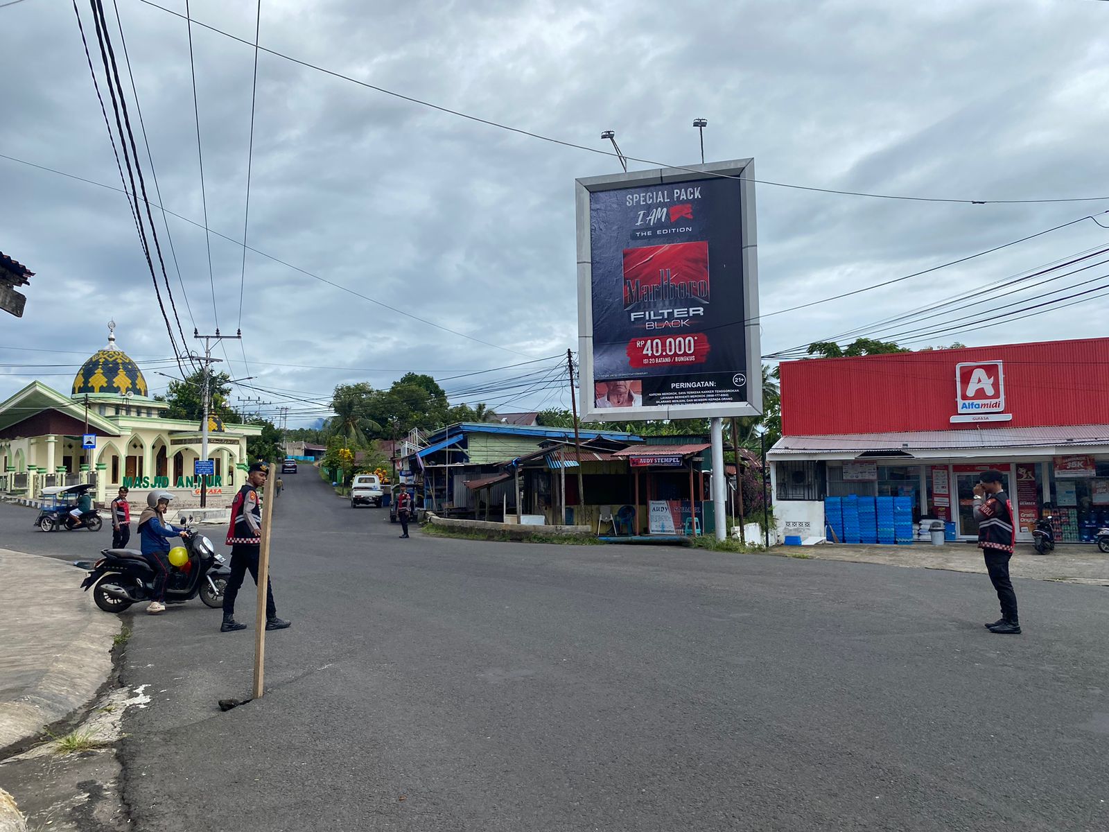 Strong point dilaksanakan di sejumlah titik strategis dan rawan kepadatan arus, yakni pertigaan depan Polsek, perempatan depan Hotel D’Hock, Jalan Hi Abu, serta pertigaan depan Megaria.