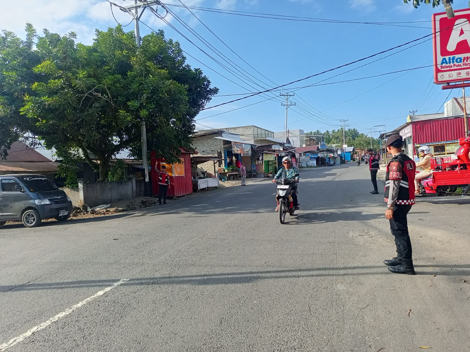 Halmahera Barat – Satuan Samapta Polres Halmahera Barat melaksanakan kegiatan strong point pada Senin pagi (27/4/2026) sebagai upaya menjaga kelancaran arus lalu lintas dan menciptakan situasi kamtibmas yang kondusif.