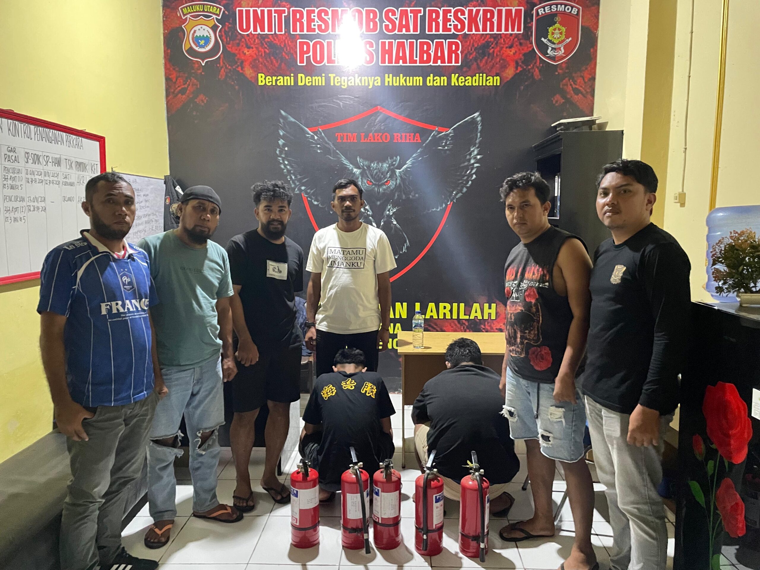 petugas berhasil melakukan penangkapan terhadap tersangka dan mengamankan barang bukti berupa lima buah Alat Pemadam Api Ringan (APAR) yang diduga merupakan hasil tindak pidana pencurian.