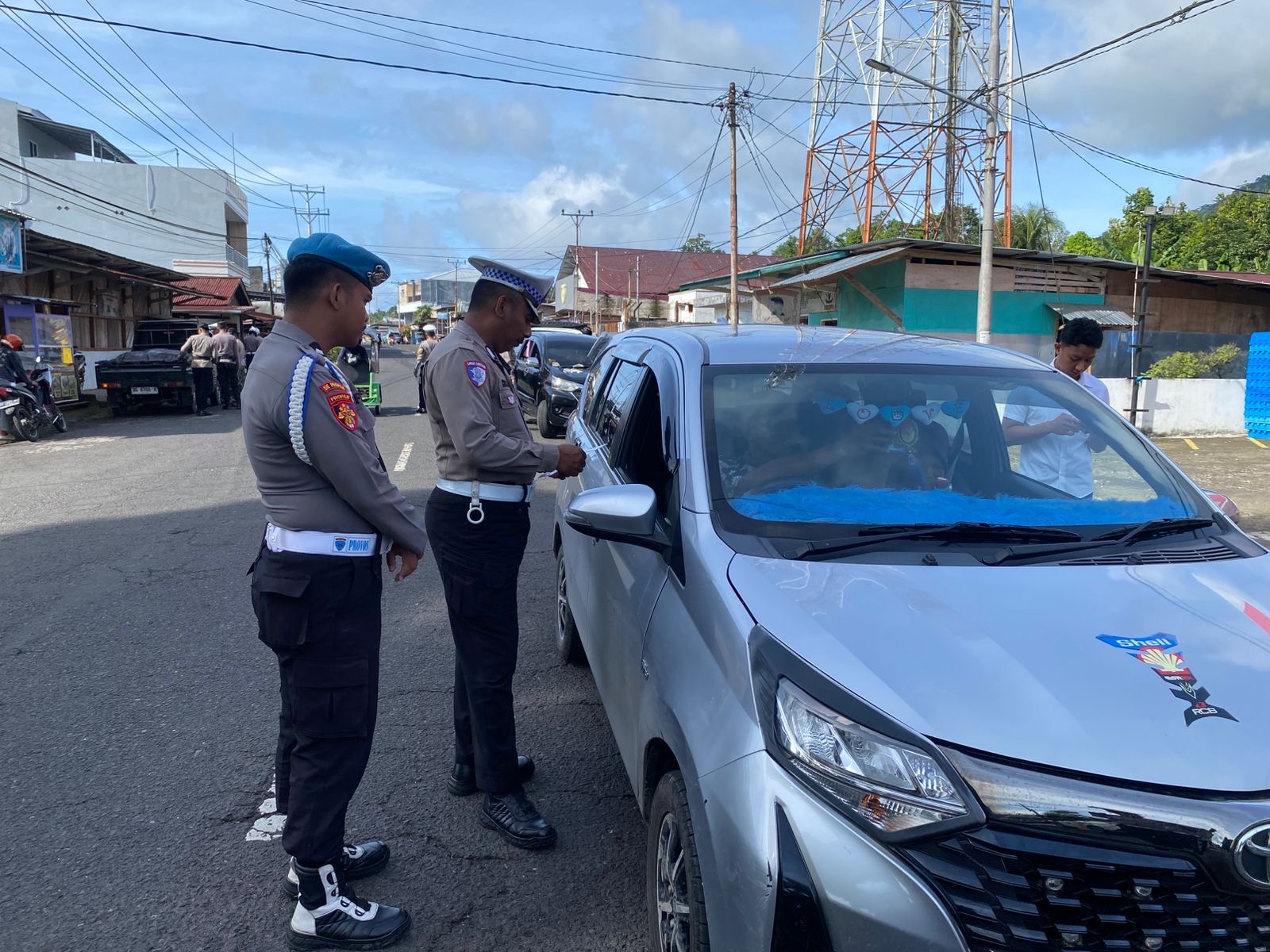 Dilanjutkan pada pukul 12.00–13.30 WIT, personel melakukan pengaturan lalu lintas di simpang Gunung Potong serta memberikan teguran kepada pengendara roda dua yang tidak menggunakan helm.