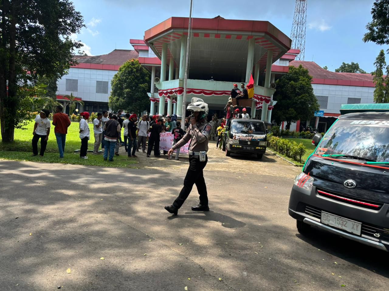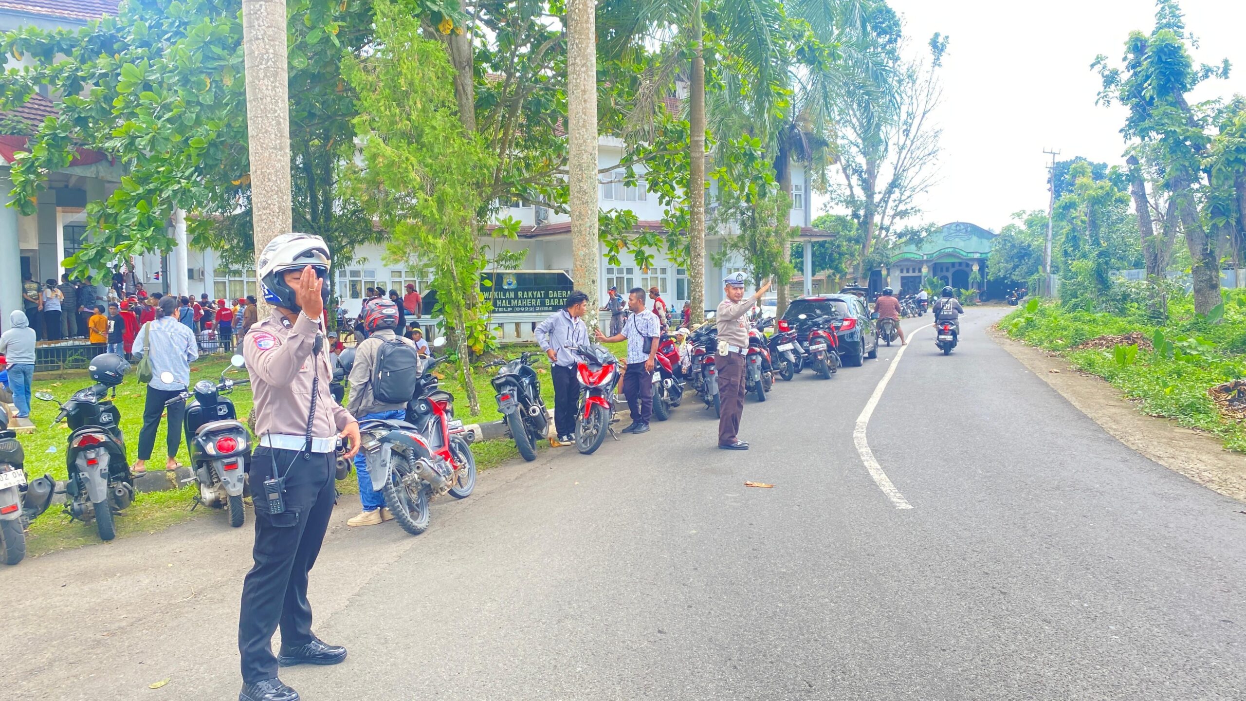 Kegiatan pengamanan dan pengawalan dipimpin langsung oleh Kasat Lantas Polres Halmahera Barat, Aksi massa tersebut diketahui menyasar Kantor DPRD Halmahera Barat serta Kantor Bupati Halmahera Barat sebagai lokasi penyampaian aspirasi.