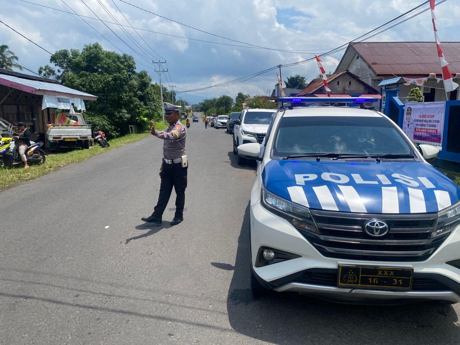 Satuan Lalu Lintas (Satlantas) Polres Halmahera Barat melaksanakan kegiatan pengawalan kunjungan kerja (Kunker) Gubernur Maluku Utara, Sherly Tjoanda Laos, yang berlangsung di beberapa titik wilayah Kabupaten Halmahera Barat.