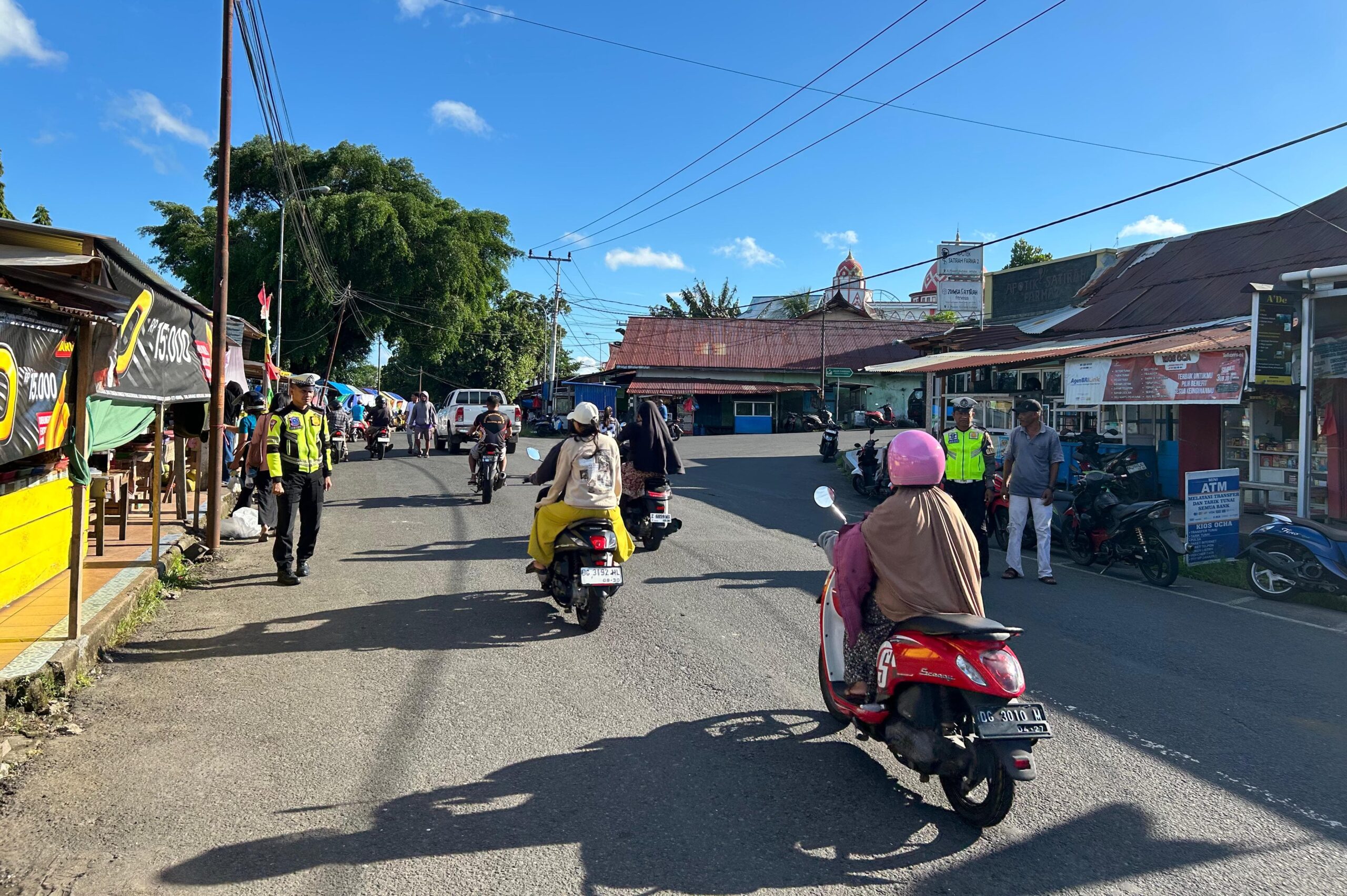 Halmahera Barat – Dalam rangka menjaga keamanan, keselamatan, ketertiban, dan kelancaran lalu lintas selama bulan Ramadhan, personel Satuan Lalu Lintas (Satlantas) Polres Halmahera Barat melaksanakan kegiatan pengaturan arus lalu lintas di kawasan Pasar Tumpah Ramadhan, Kecamatan Jailolo, Minggu (8/3/2026).