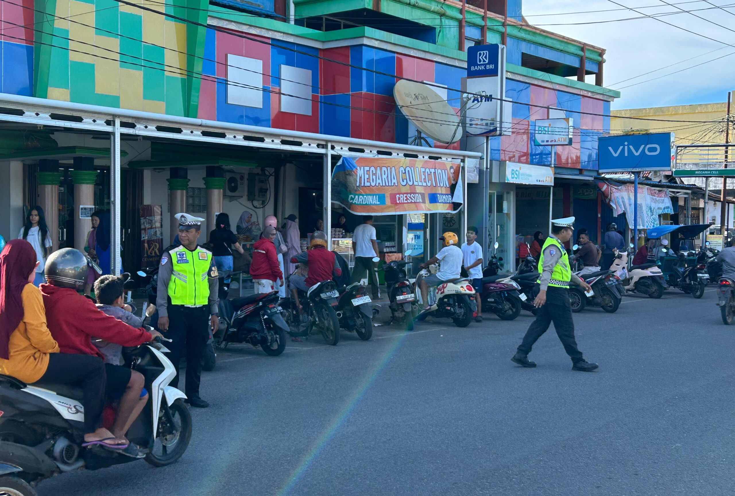 Halmahera Barat – Dalam rangka menjaga keamanan, keselamatan, ketertiban, dan kelancaran lalu lintas selama bulan Ramadhan, personel Satuan Lalu Lintas (Satlantas) Polres Halmahera Barat melaksanakan kegiatan pengaturan arus lalu lintas di kawasan Pasar Tumpah Ramadhan, Kecamatan Jailolo, Minggu (8/3/2026).