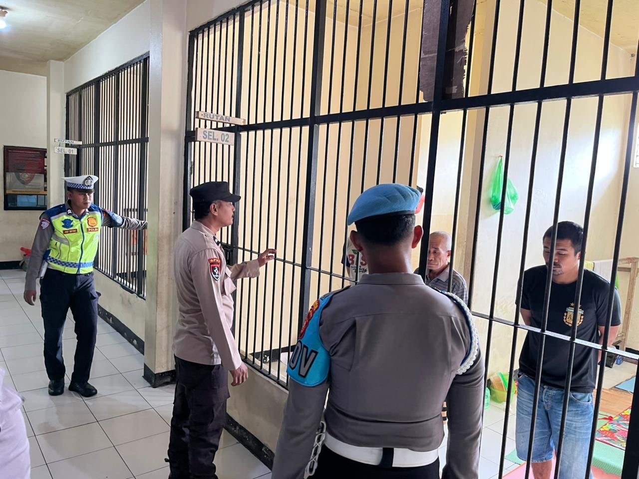 Selanjutnya, pada pukul 08.30 WIT, dilaksanakan pengecekan tahanan di Rutan Polres Halbar oleh piket Satfung. Berdasarkan hasil pengecekan, jumlah tahanan sebanyak tiga orang dengan status perkara berbeda. Seluruh tahanan dinyatakan dalam kondisi sehat dan situasi Rutan terpantau aman serta terkendali.
