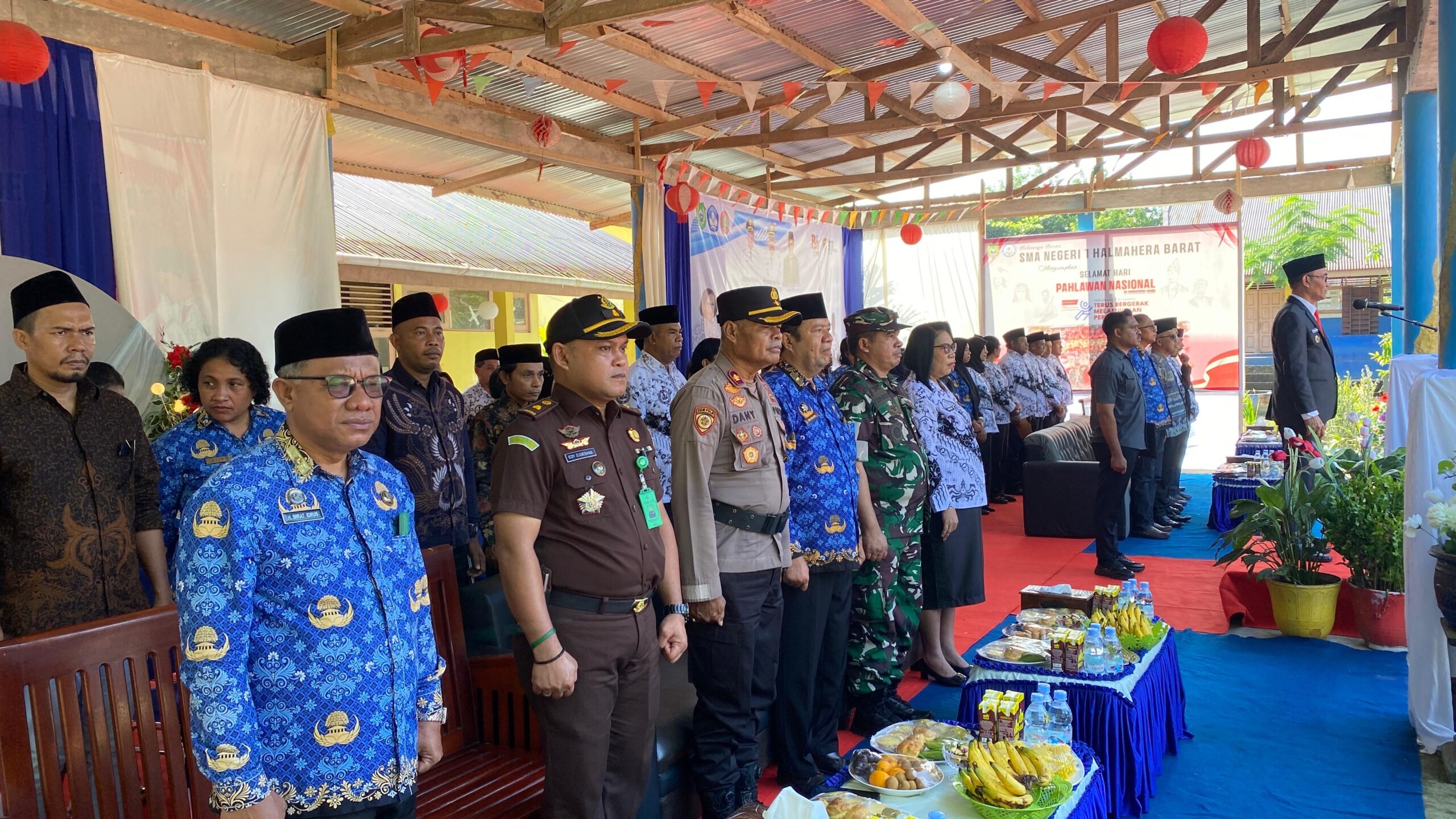 Upacara dipimpin oleh Wakil Bupati Halbar Jufri Muhammad selaku Pembina Upacara. Adapun Masrul Amir, Guru SMP Negeri 01 Halbar, bertindak sebagai Komandan Upacara. Kegiatan ini dihadiri unsur Forkopimda, pimpinan OPD, kepala sekolah, para guru, serta sekitar 400 pelajar SMP dan SMA se-Kabupaten Halbar.