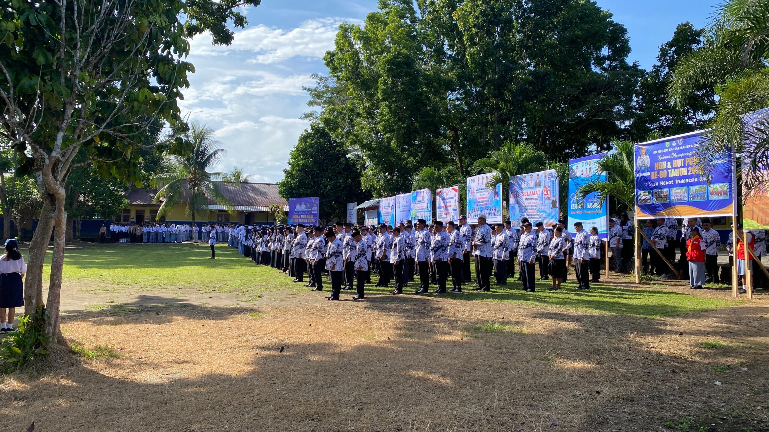 HALMAHERA BARAT — Upacara Peringatan Hari Ulang Tahun Persatuan Guru Republik Indonesia (PGRI) ke-80 sekaligus Hari Guru Nasional (HGN) Tahun 2025 berlangsung khidmat di lapangan SMA Negeri 01 Halmahera Barat, Desa Jati, Selasa (25/11/2025) pukul 08.20 WIT. Kegiatan besar ini juga dihadiri jajaran Polres Halmahera Barat sebagai bentuk dukungan terhadap kemajuan pendidikan dan penghormatan kepada para guru.