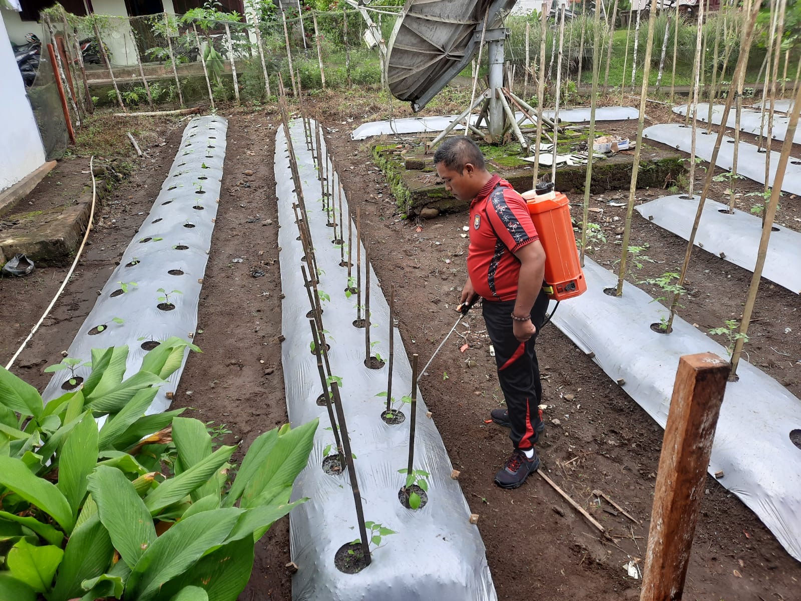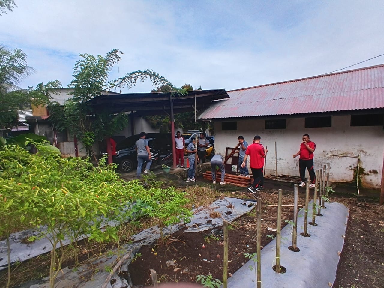 Dalam kegiatan tersebut, personel melakukan pembersihan area kebun dan menanam kayu sebagai pagar pembatas di sekeliling kebun. Pagar ini bertujuan untuk melindungi tanaman sayuran dan cabai dari gangguan hewan yang dapat merusak pertumbuhan tanaman.